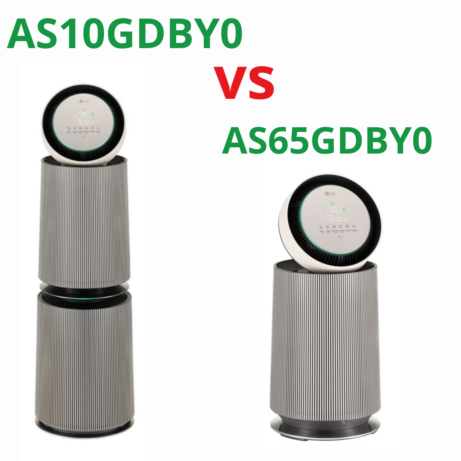 Lọc khí xanh sẽ đưa ra các thông tin chỉ số về 2 sản phẩm Máy lọc không khí LG PuriCare360 Alpha PET AS10GDBY0 ( 2 tầng ) và Máy lọc không khí PuriCare360 Alpha PET AS65GDBY0 | Lọc không khí 360˚ ( 1 tầng ) để quý khách hàng cùng xem tham khảo